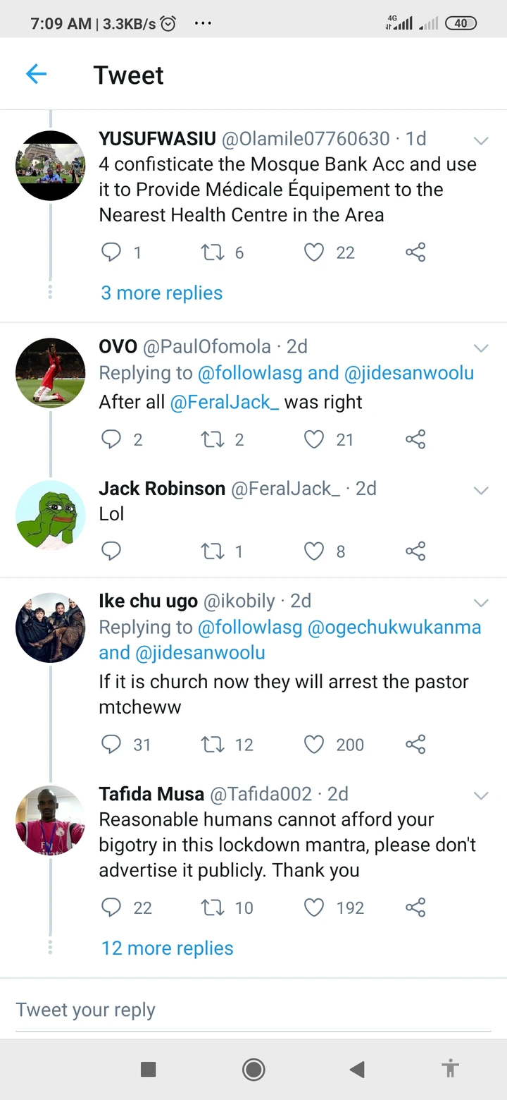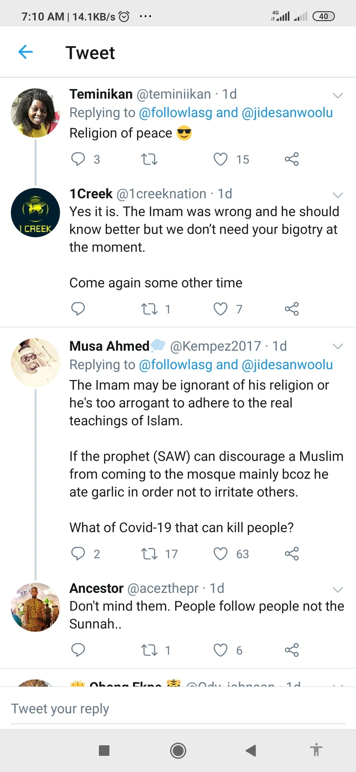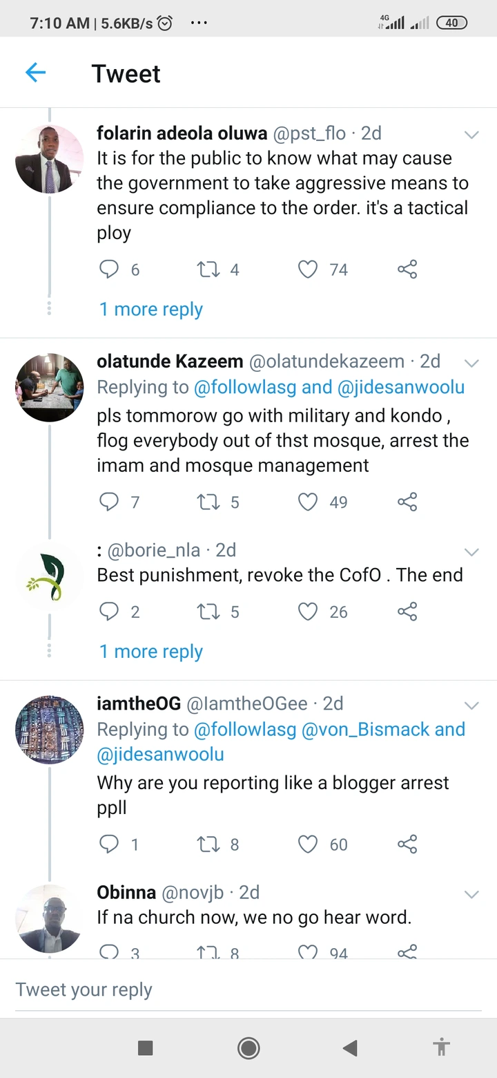 — Nigerians want the Muslim cleric, the Imam to be arrested if they continue to flout Governmental instructions on public safety.